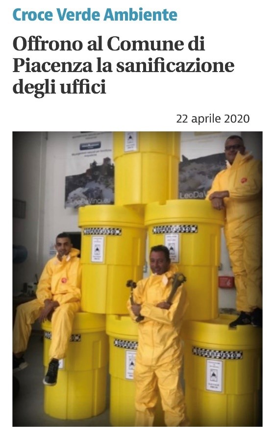 L’Azienda partner è la piacentina LEO DA VINCI – CROCE VERDE AMBIENTE, certificata ISO 9001, ISO 14001 e ISO 29990.